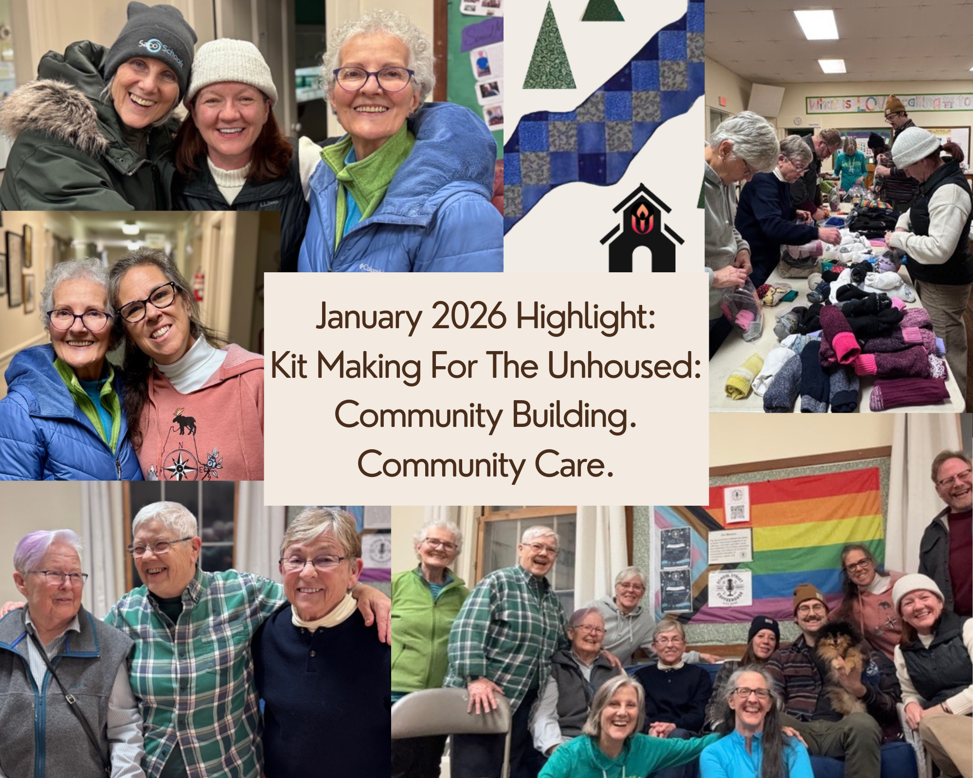 It is February 2026. The theme for our month is Embodying Resilience. I believe that is perfect after the January we have experienced and the calls to resist in the many ways we can and do! Resilience is an ultimate act of resistance and it is our task and our study this month. We will live our resilience by eating together, worshipping together, saging together, singing together, kit making, and working side by side. We will celebrate our volunteering, and each other and we may even squeeze in a game night….Stay tuned for that. There is also an ecumenical/interfaith service in the works for early February. Stay tuned for that as well!